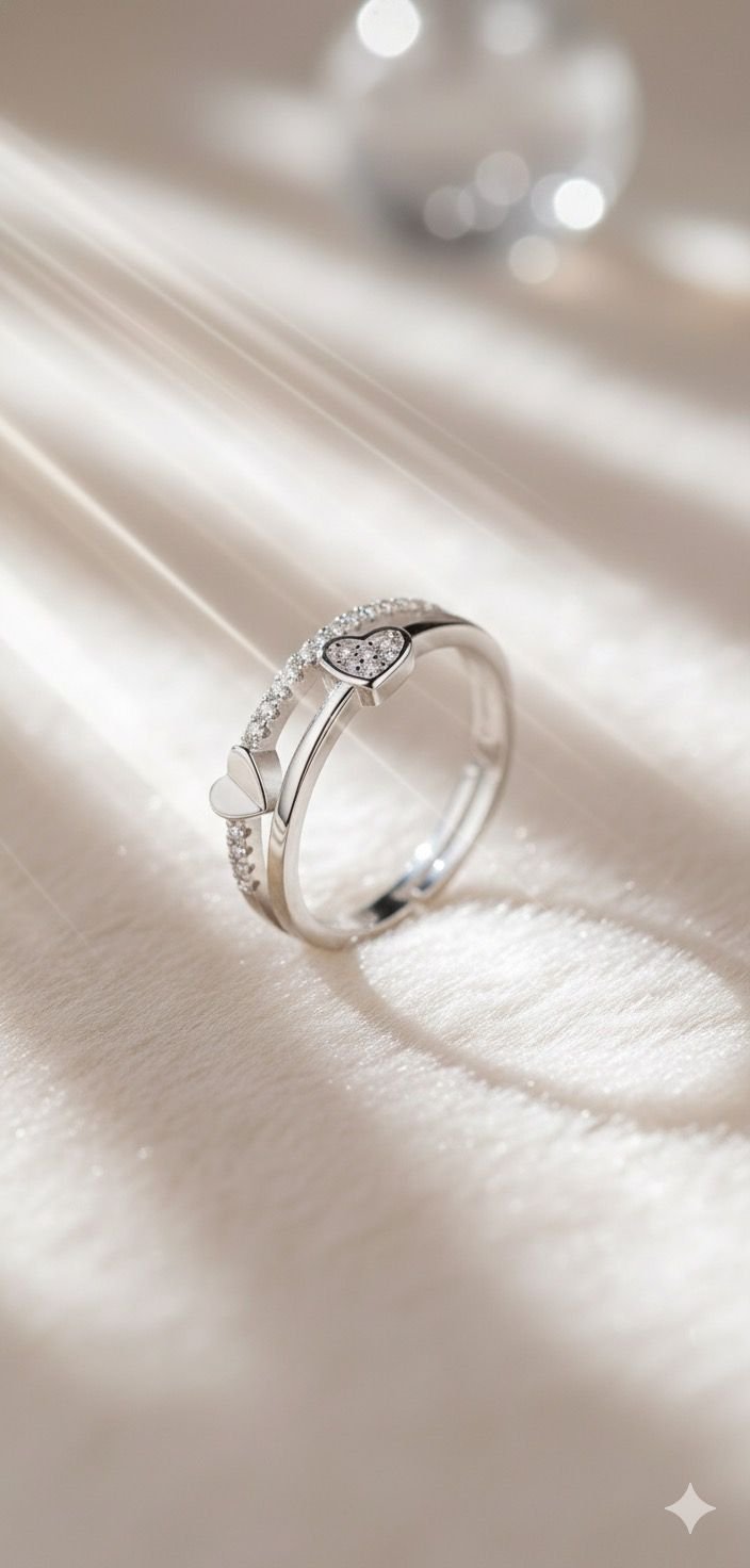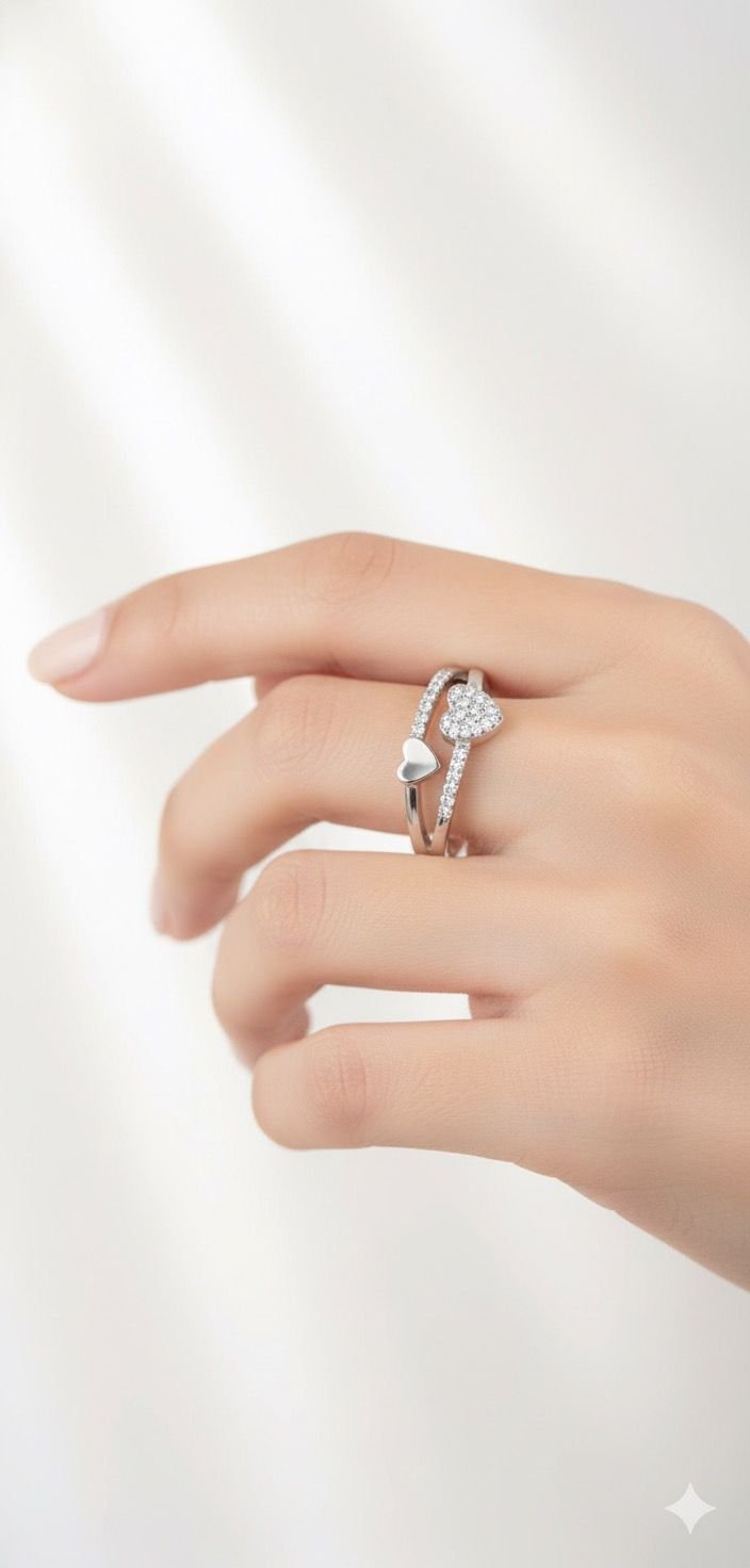 Introducing the Twin Hearts Sparkle Wrap Ring, a beautifully modern yet romantic piece crafted to celebrate deep affection and togetherness. The design features two hearts—one shimmering with pavé crystals and the other polished to a high shine—representing two souls connected by love.